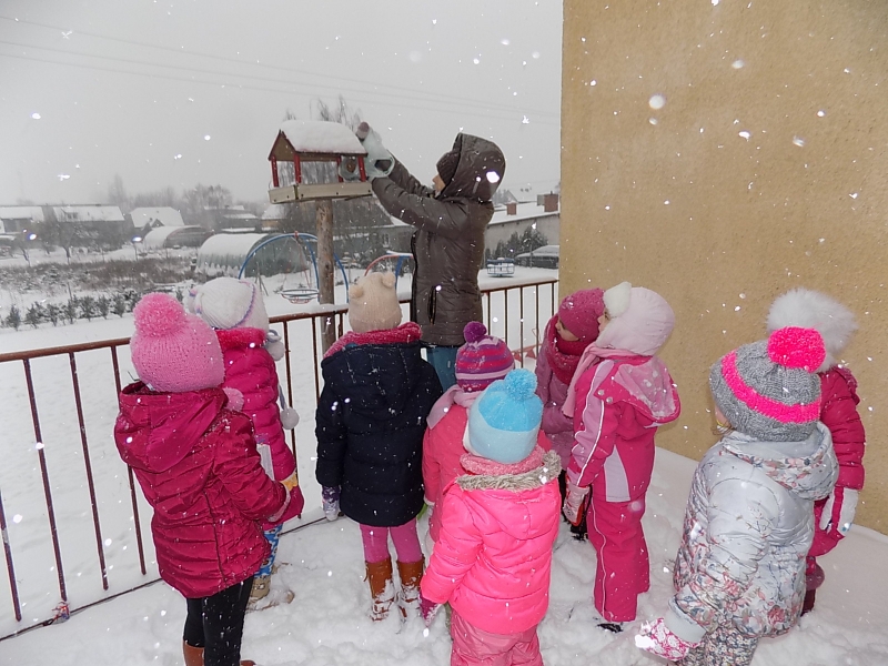 iedzą o tym nasze przedszkolaki i zgromadziły duże zapasy ziaren, orzechów i innych ptasich przysmaków. Teraz regularnie sprawdzamy pobliskie przedszkolne karmniki i uzupełniamy w nich pokarm dla ptaków.