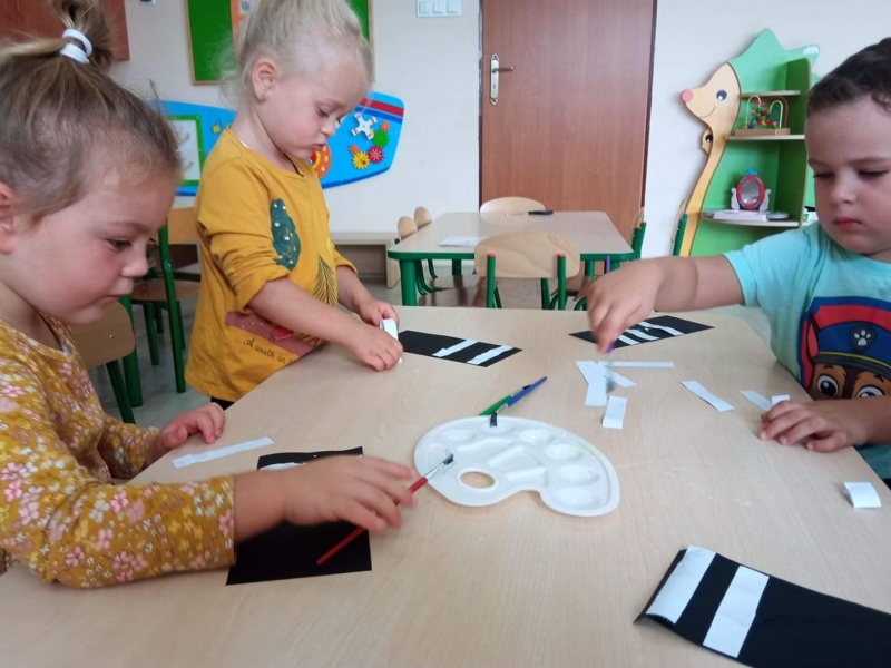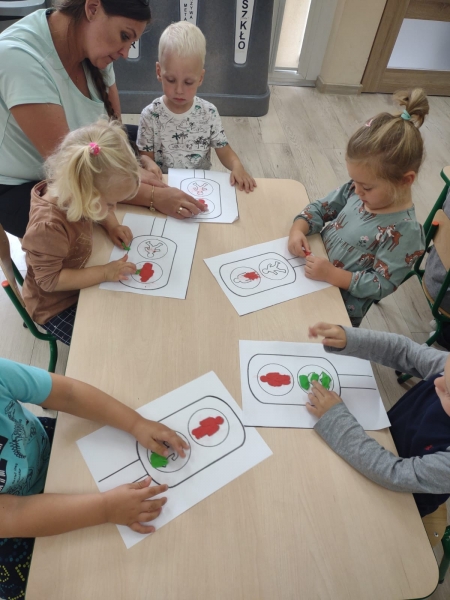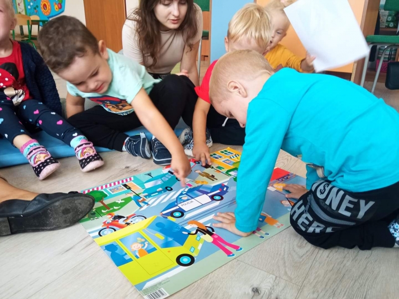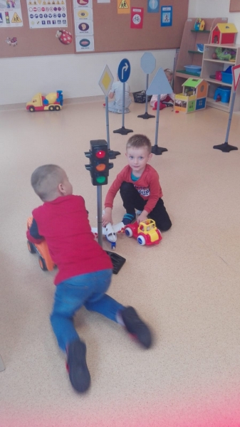 We wrześniu w naszym przedszkolu rozpoczął się cykl zajęć związanych z bezpieczeństwem na drodze. Dzieci zapoznały się z najważniejszymi zasadami ruchu drogowego. Dzieci poznawały podstawowe znaki drogowe oraz sygnalizatory świetlne. Na pobliskim skrzyżowaniu, uczyły się poprawnego przechodzenia przez jezdnię. W trakcie zajęć wykorzystywano prezentacje multimedialne i filmy edukacyjne, dzięki którym dzieci poznawały zagrożenia wynikające z niewłaściwego zachowania się na ulicy. Dzieci wykonały mnóstwo prac plastycznych związanych z ruchem drogowym.