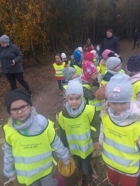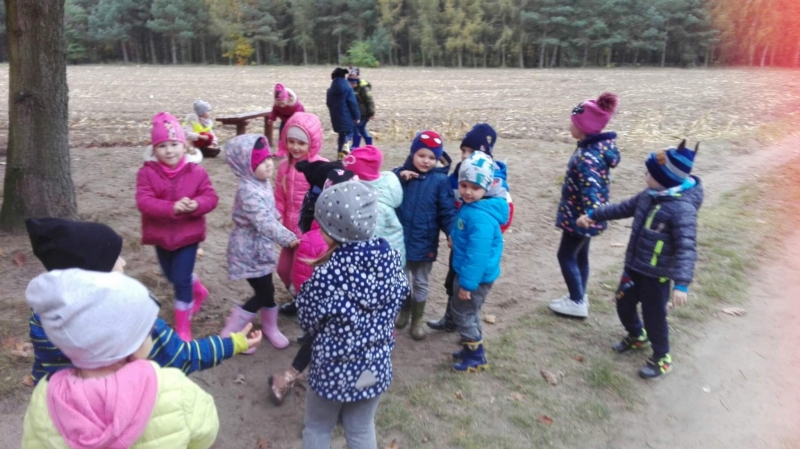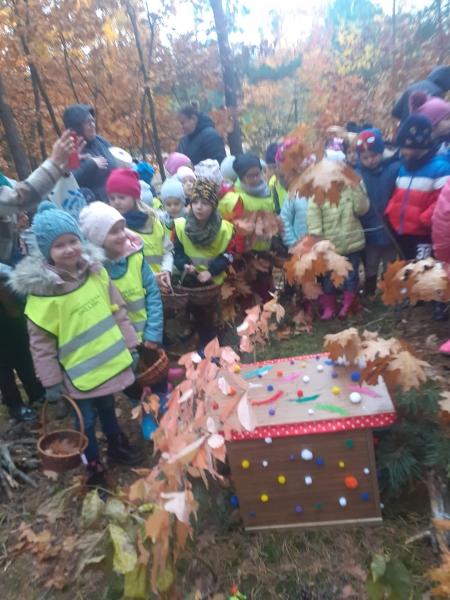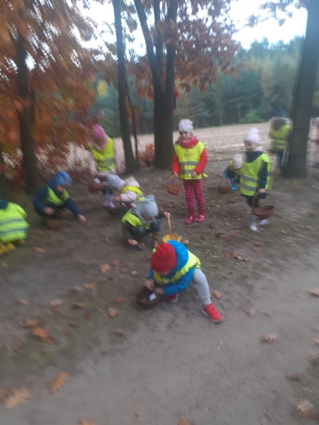 Jesień to wyjątkowa pora roku. Zmiany zachodzące w przyrodzie, bogactwo skarbów leśnych zachęciło dzieci z grup 4 – 5 latków na spacer. To był wspaniały czas spędzony na łonie natury.