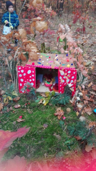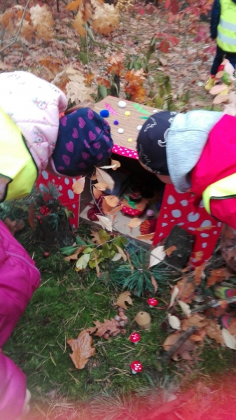Oprócz żołędzi i kolorowych liści dzieci znalazły słodkie upominki od leśnych krasnoludków. Długo będziemy wspominać jesienną wyprawę do lasu.