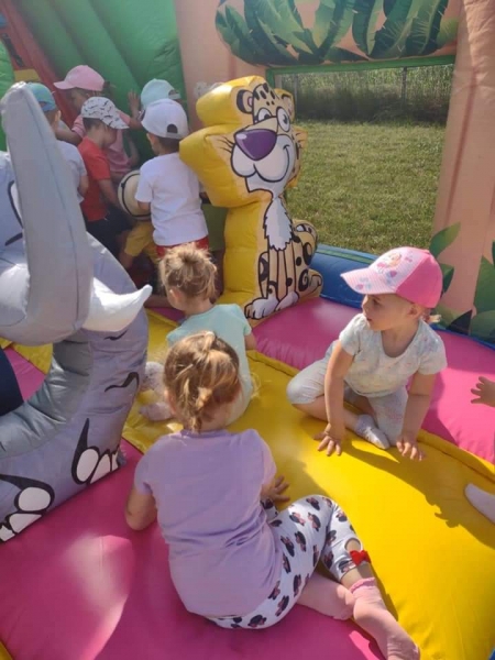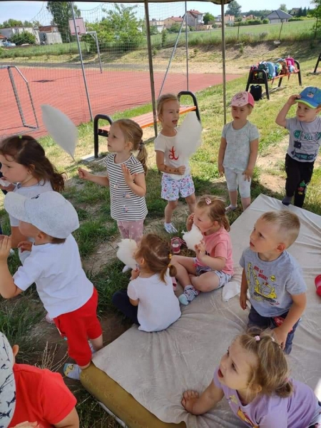 15 czerwca z okazji Dnia dziecka dla dzieci z naszego przedszkola zorganizowano szereg atrakcji. Wszystko dzięki udziałowi w projekcie „Nowe miejsca pracy w gminie Skulsk”. Dla dzieci rozstawione były dmuchańce – plac zabaw oraz zjeżdżalnie. Dużym zainteresowaniem cieszyły się animacje i różne zabawy prowadzone przez animatorkę. Pokaz dużych baniek mydlanych oraz na zakończenie wata cukrowa wywołały dużo uśmiechu i radości na twarzach przedszkolaków. Całości dopełniła piękna pogoda, która sprzyjała nastrojom i świetnej zabawie. Dziękujemy serdecznie rodzicom z rady rodziców przedszkola za orzeźwiające napoje i pomoc w organizacji wydarzenia.