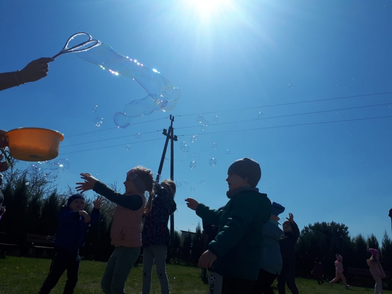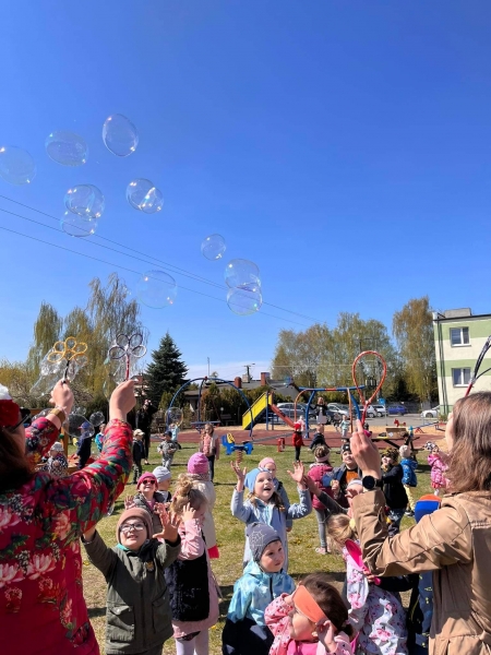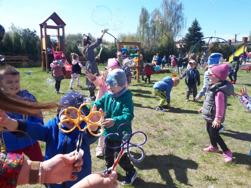 Dziś obchodziliśmy w naszym przedszkolu Dzień Twórczości z Piany. Wszystko dzięki udziałowi w Czyściochowej Akademii. Zainspirowani higienicznymi zabawami spotkaliśmy się na naszym placu, gdzie łapaliśmy niezliczone banki mydlane. Świetna zabawa gwarantowana!