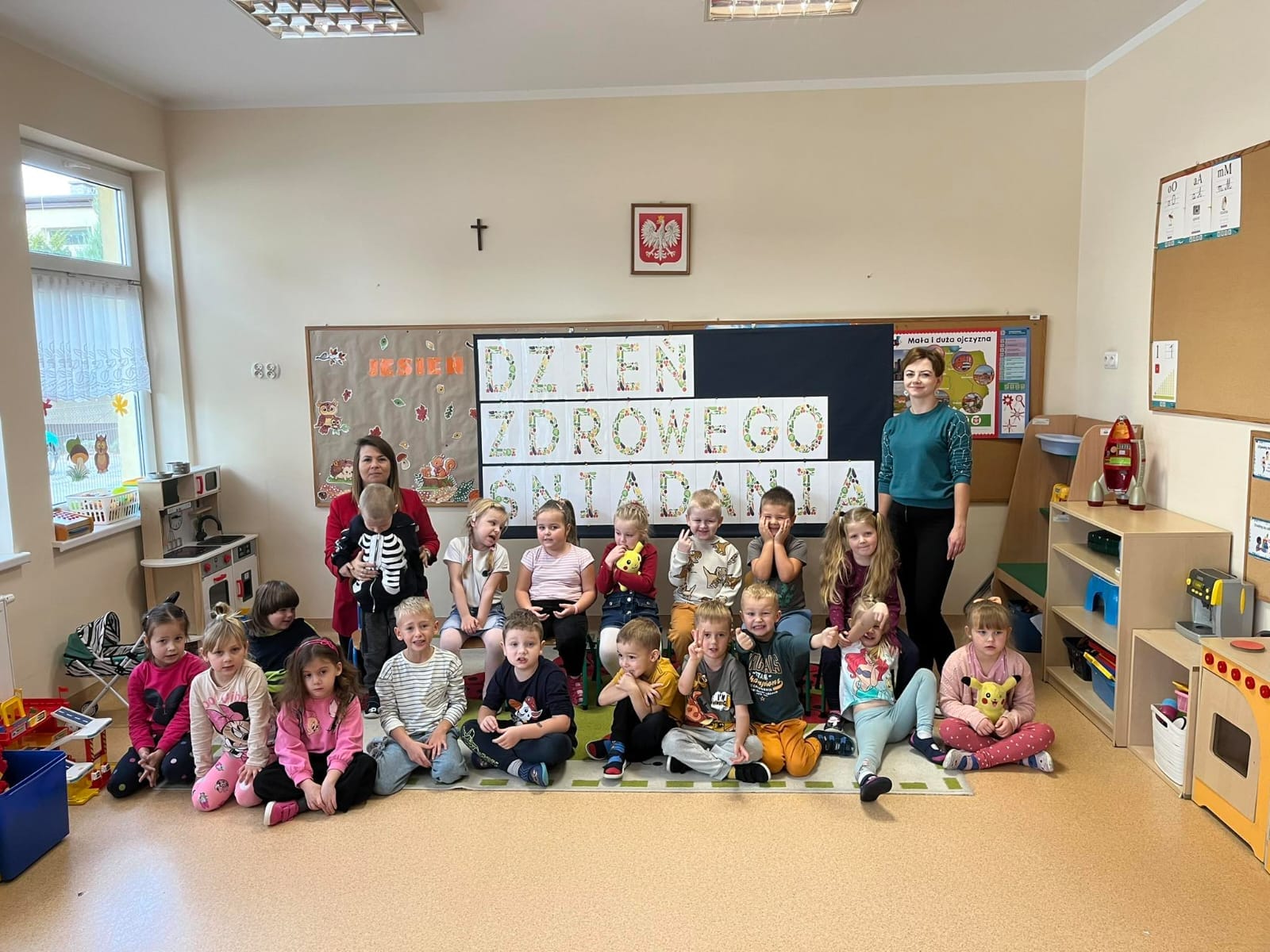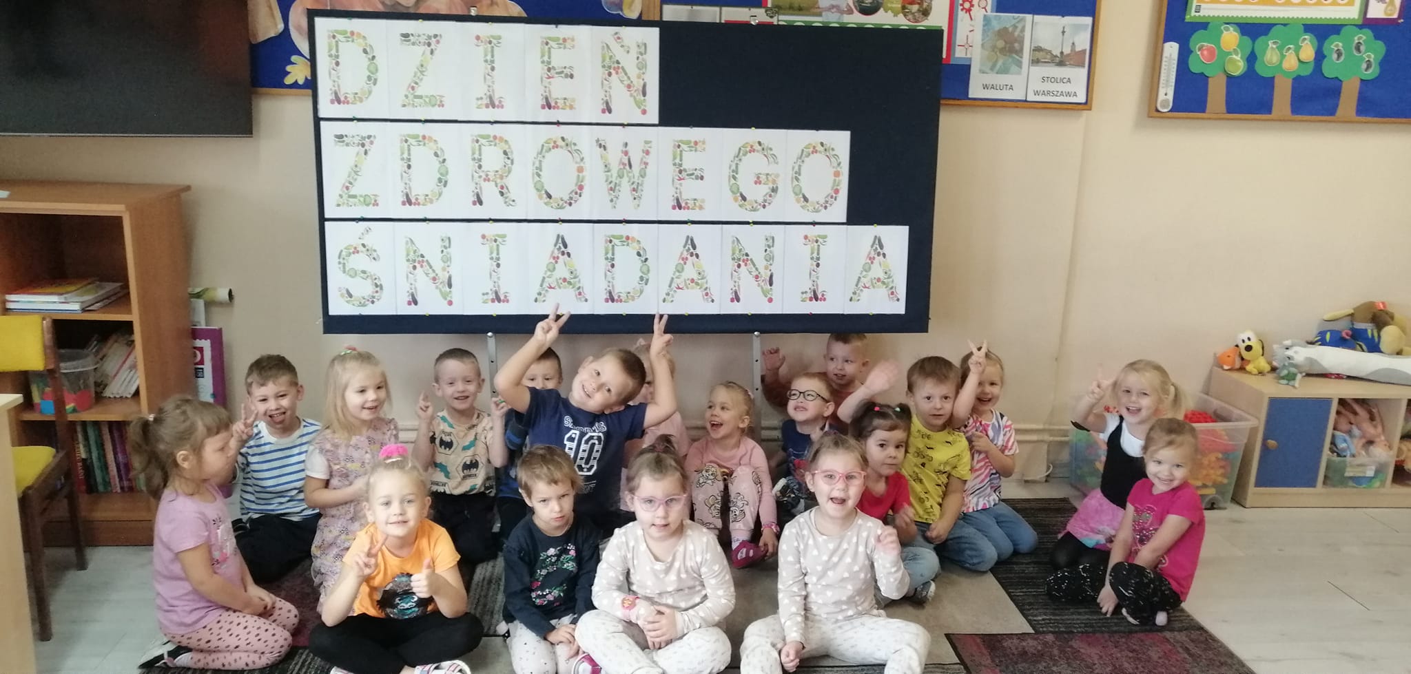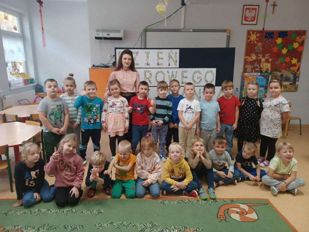 Po śniadaniu utrwalaliśmy, które produkty dają nam siłę i moc a które nas osłabiają i powodują, że łatwiej chorujemy. Nie zapomnieliśmy również o spacerze, by codzienna porcja świeżego powietrza i ruchu wzmacniała naszą odporność