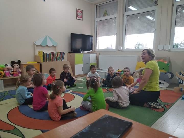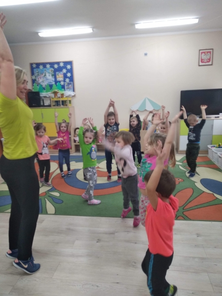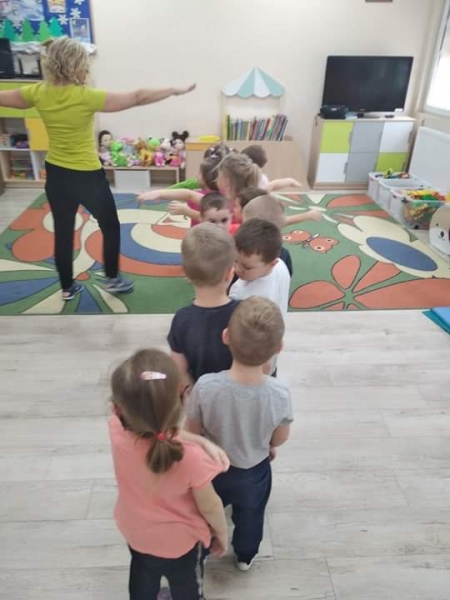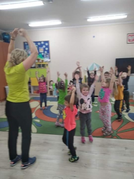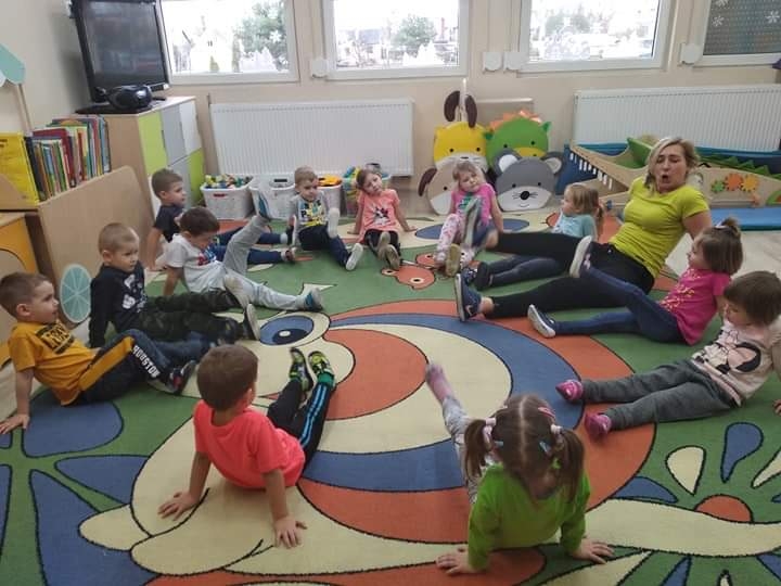 Trzy i czterolatki z grupy Pszczółki systematycznie uczestniczą w zajęciach z gimnastyki korekcyjnej.