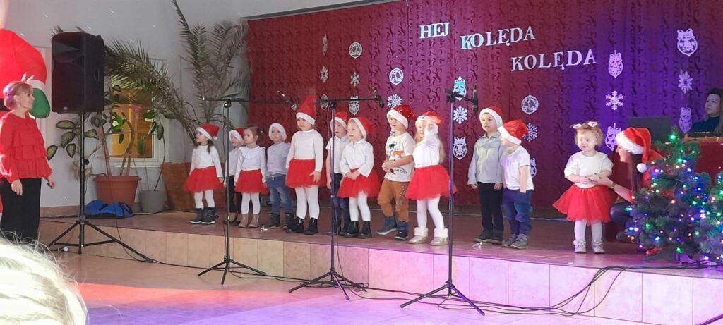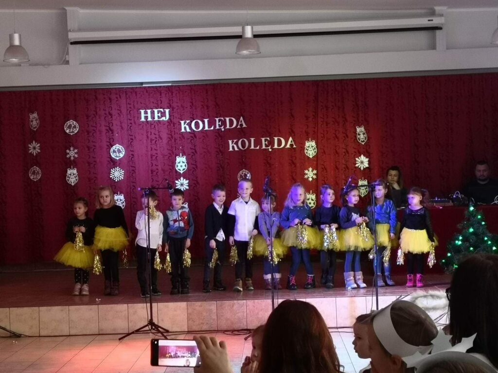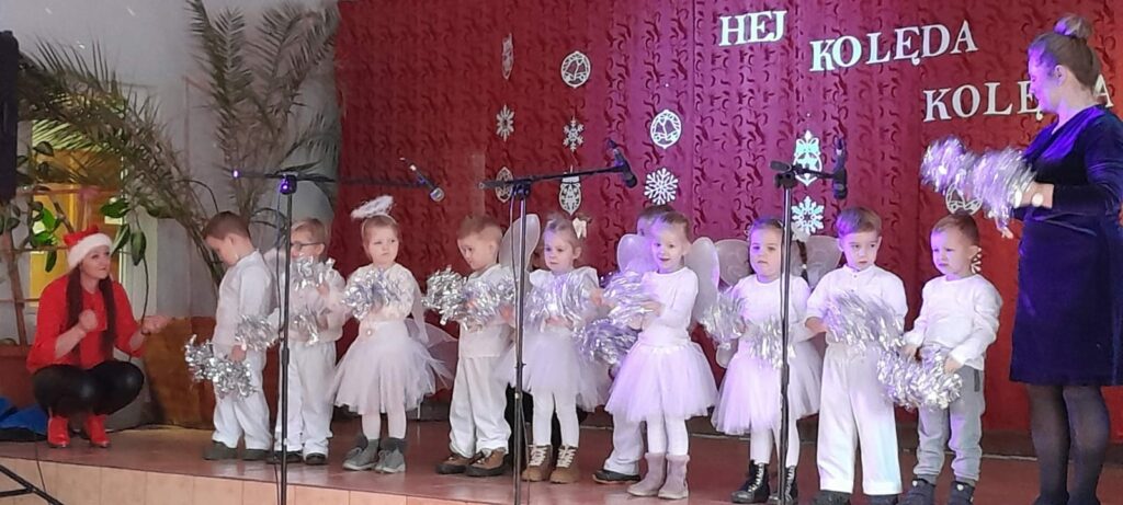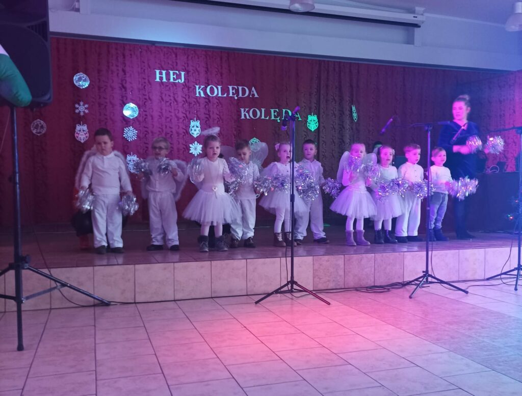 20.01.23. Za nami piękny dzień! W II Przedszkolnym Przeglądzie Kolęd i Pastorałek udział wzięli mali artyści z naszego Przedszkola Gminnego w Skulsku: Misie, Pszczółki, Motylki, Biedronki i Żabki oraz Zerówka grupa A i Zerówka grupa B. Dzieci przygotowały kolędy i pastorałki, by zaprezentować się swoim Rodzinom oraz zaproszonym gościom. Przegląd uatrakcyjnił również pokaz tańca w wykonaniu grupy tanecznej dzieci 6-letnich pod kierunkiem p. Ewy Wolaszek oraz pokaz tańca z grupy tanecznej TucanDance pod kierunkiem p. Weroniki Jadczak.