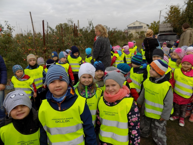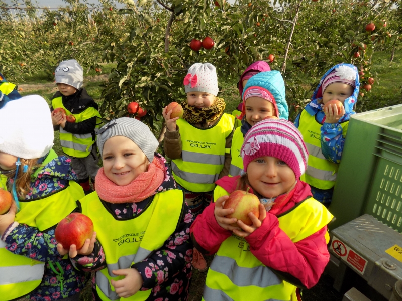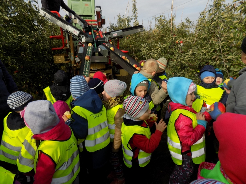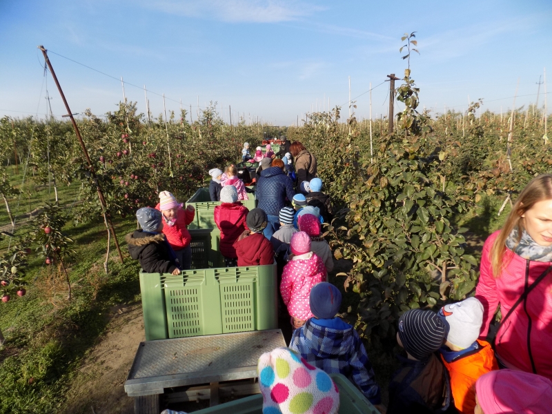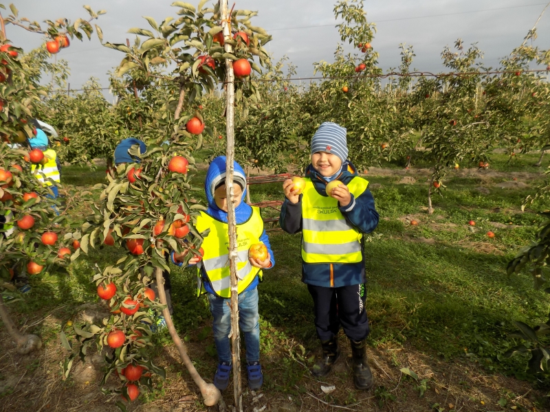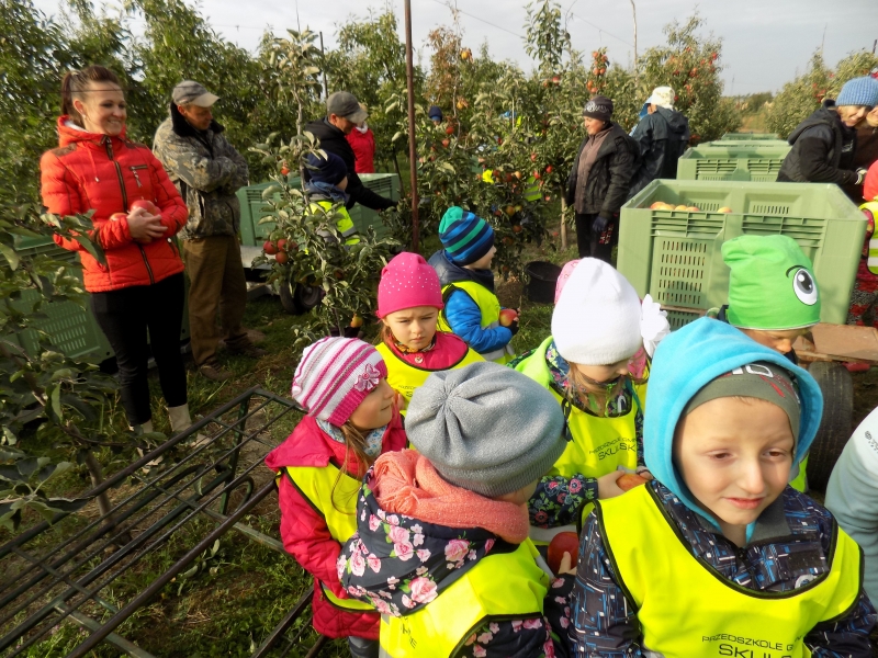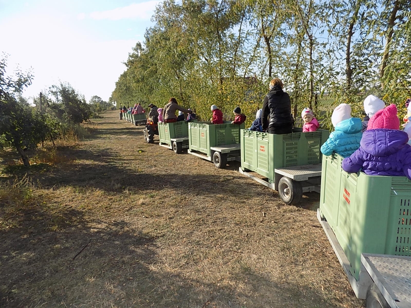 Przedszkolaki o tym wiedzą i wszystkie chętnie się wybrały do sadów pana Stanisława Staszewskiego. Przez dwa dni (7 i 8 października 2015r), jeździliśmy między rzędami, by podziwiać lśniące w słońcu kolorowe jabłka. Podglądaliśmy jesienne zrywanie owoców i ich transport. Obdarowani jabłkami i gruszkami wróciliśmy do przedszkola.