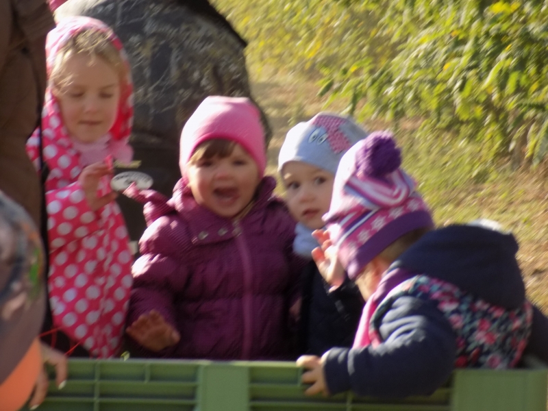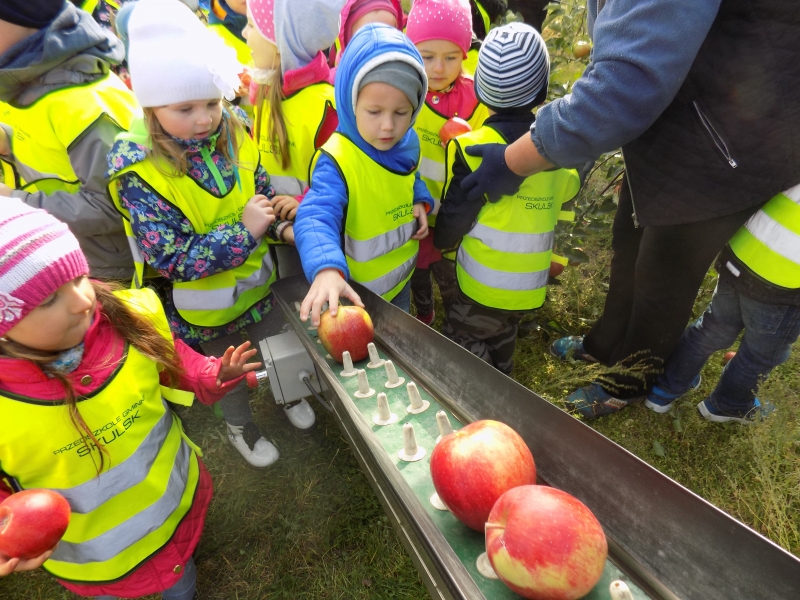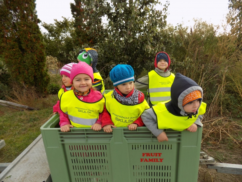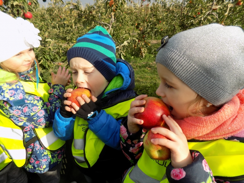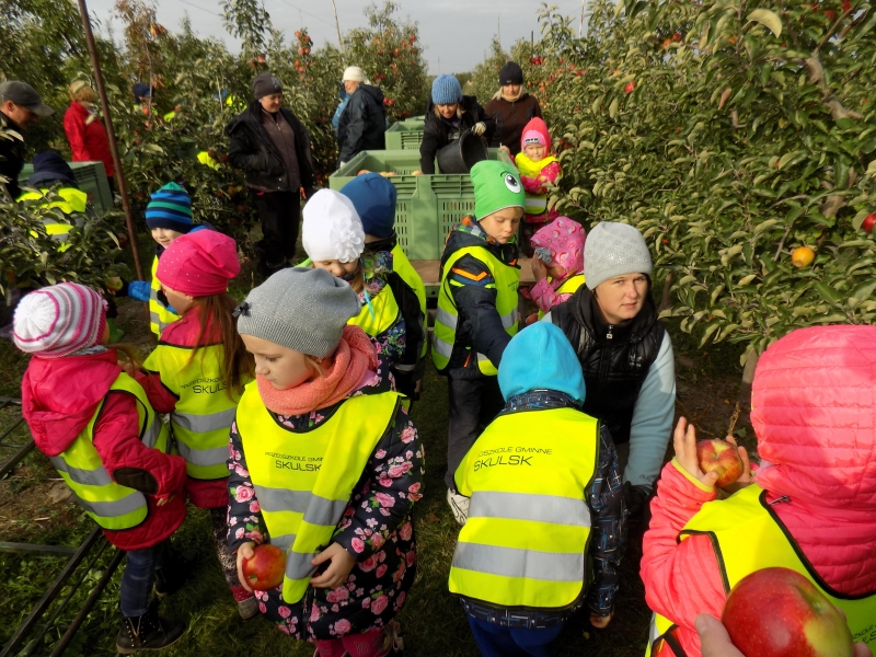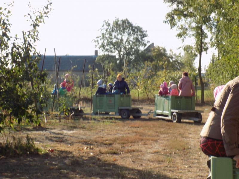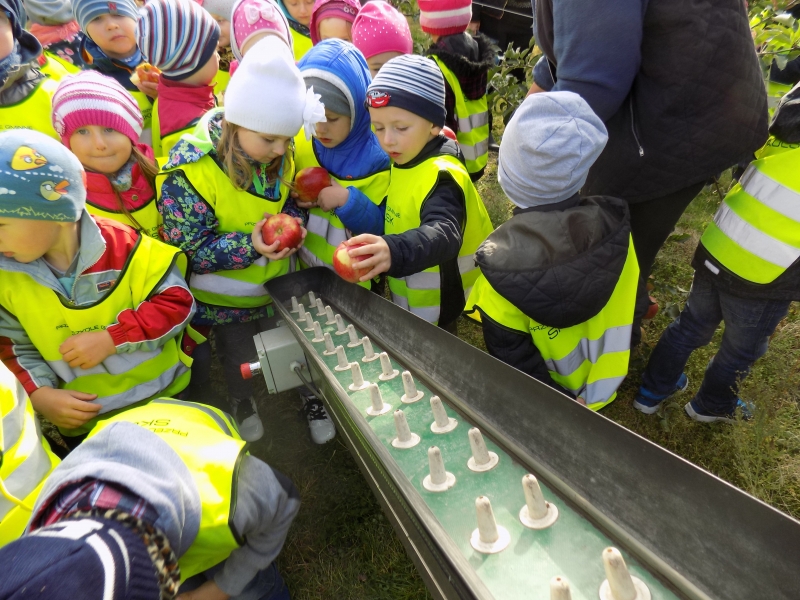 Przedszkolaki o tym wiedzą i wszystkie chętnie się wybrały do sadów pana Stanisława Staszewskiego. Przez dwa dni (7 i 8 października 2015r), jeździliśmy między rzędami, by podziwiać lśniące w słońcu kolorowe jabłka. Podglądaliśmy jesienne zrywanie owoców i ich transport. Obdarowani jabłkami i gruszkami wróciliśmy do przedszkola.