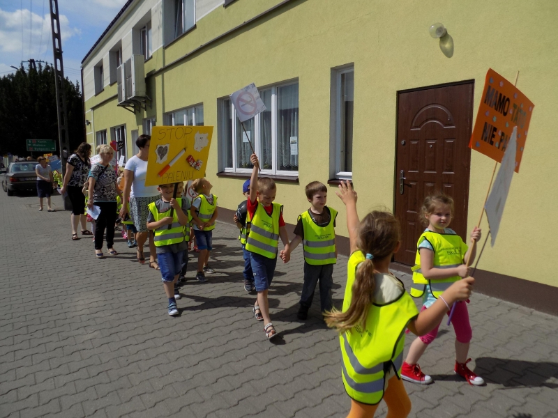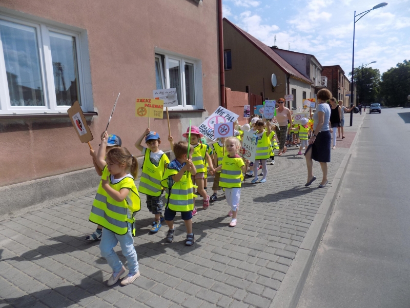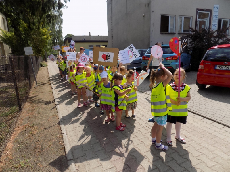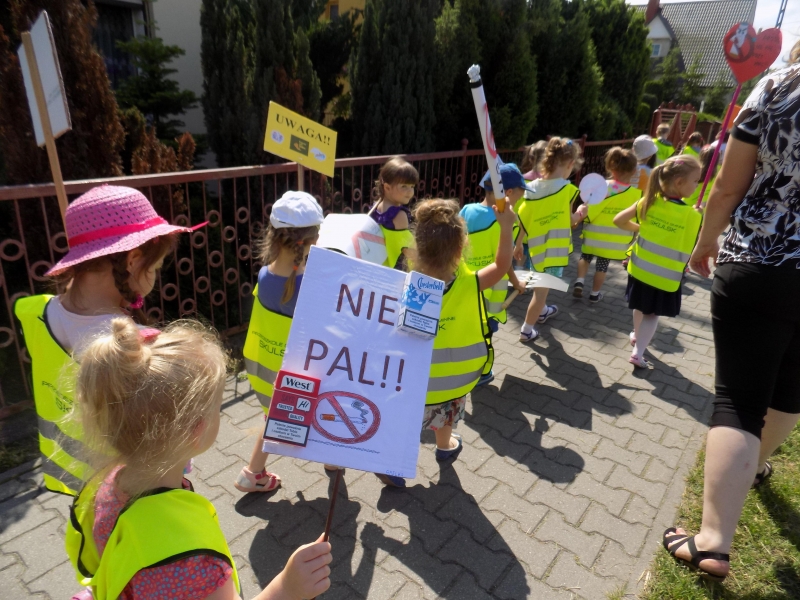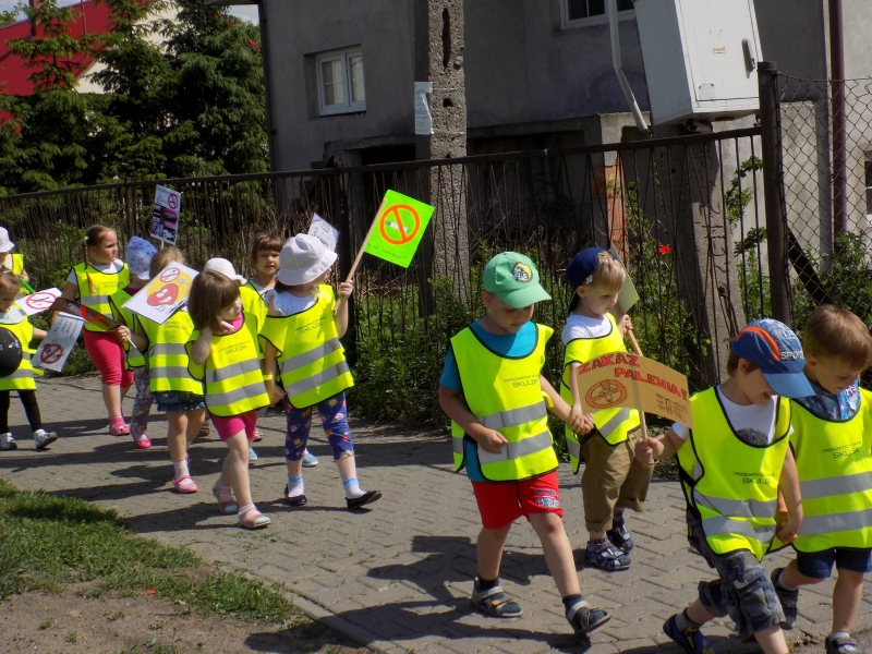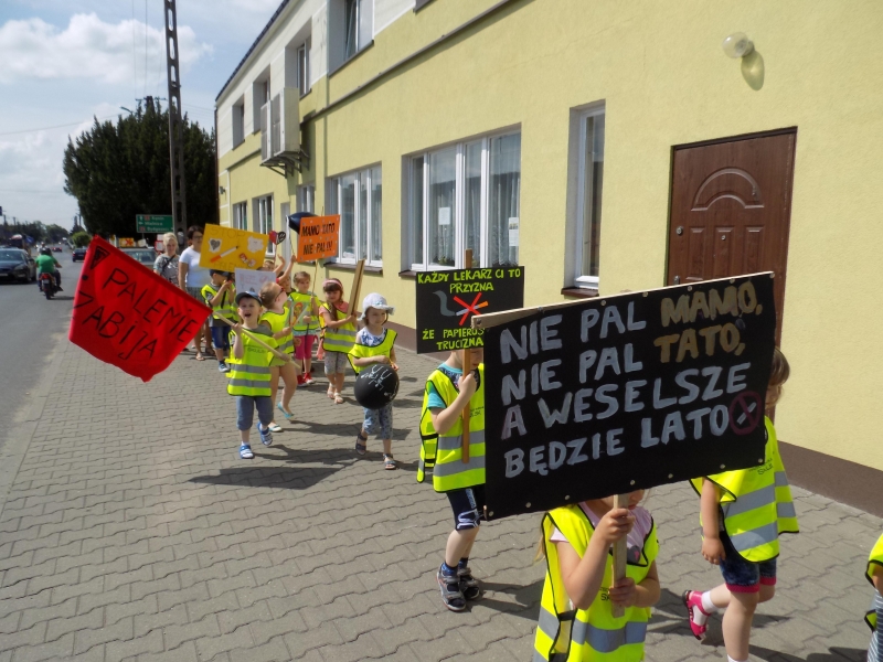 Z okazji Dnia Bez Papierosa obchodzonego 31 maja w naszym przedszkolu zorganizowaliśmy Marsz antynikotynowy.Hasłem przewodnim naszej akcji były słowa „Nawet dziecko o tym wie, że palenie jest złe”.
