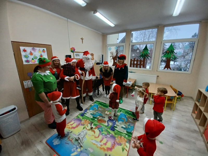 6 grudnia dzieci z naszego przedszkola odwiedził Mikołaj z pomocnikami Wszystkie dzieci miały okazję osobiście okazję otrzymać od gościa prezent. Była też wspólna zabawa, taniec i śpiew z Mikołajem i Elfami.
