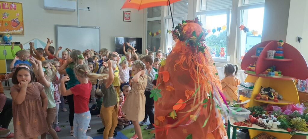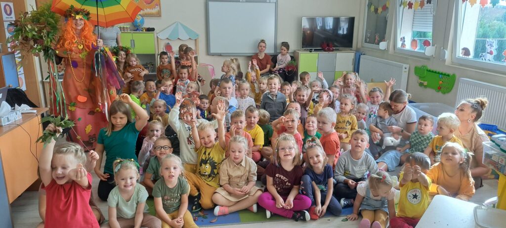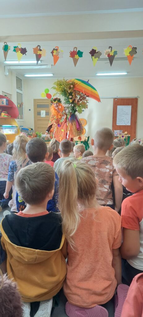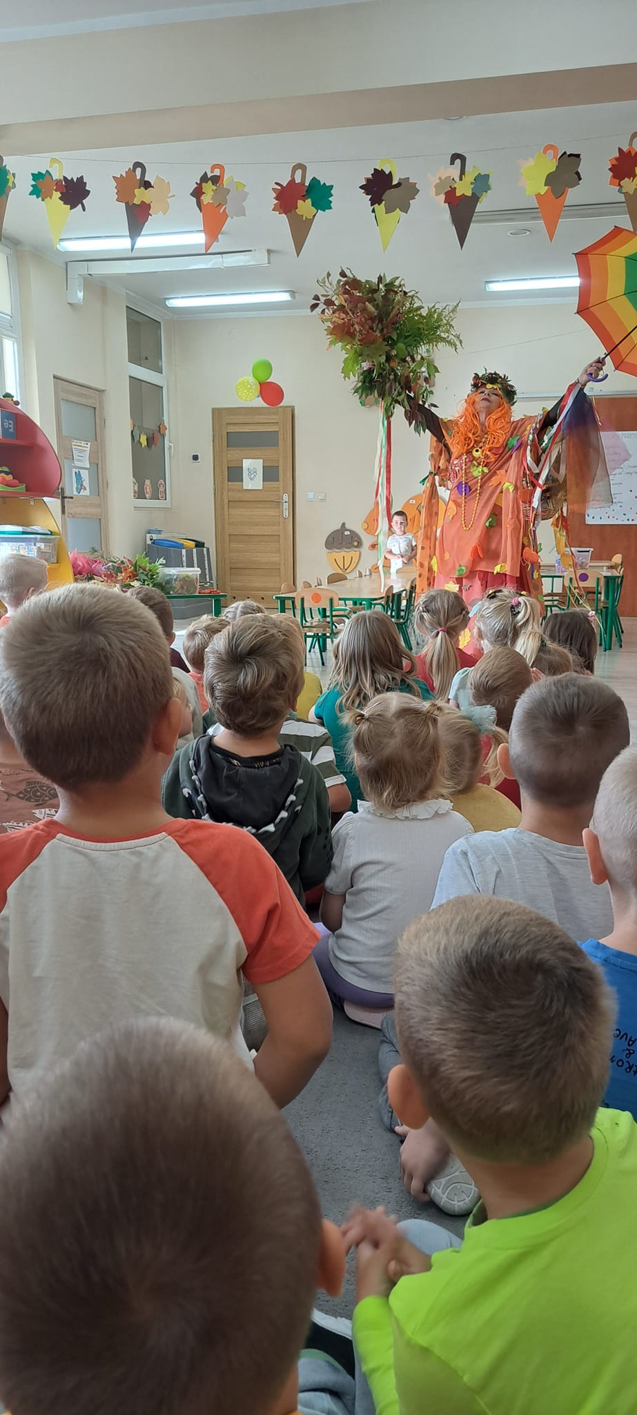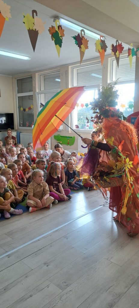 23.09.24 Powitanie Jesieni. Dzisiejszy dzień był bardzo wyjątkowy…Wszystko za sprawą wizyty wspaniałego gościa. Dzieci odwiedziła rozśpiewana i kolorowa Pani Jesień. Nie zabrakło więc cudownych rymowanych wierszy, piosenek, jesiennych prezentów i oczywiście uśmiechów na twarzach naszych kochanych przedszkolaków!