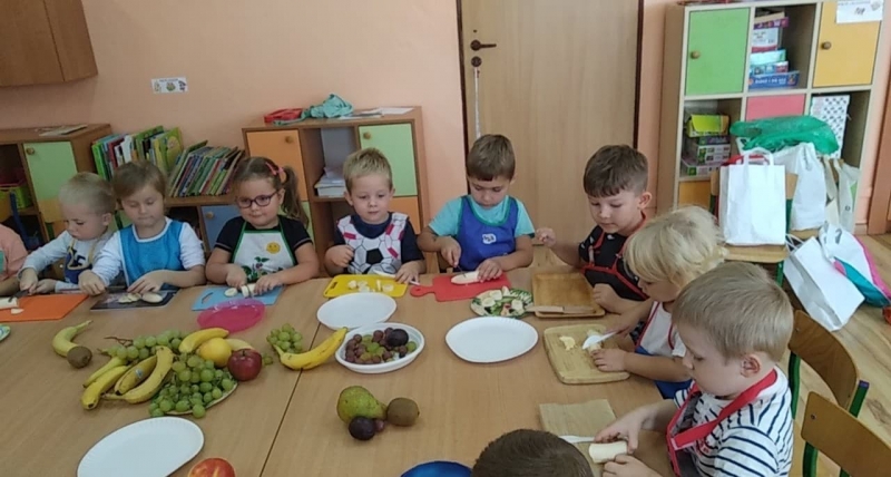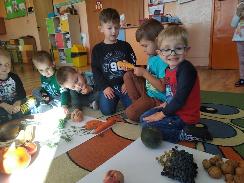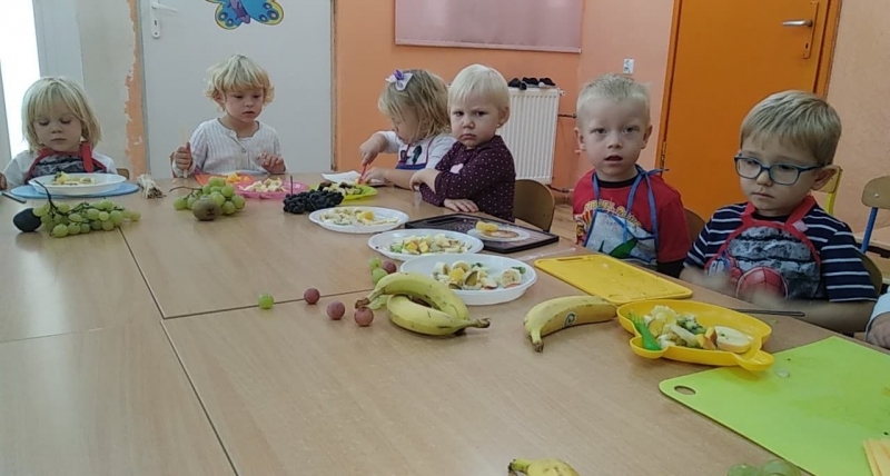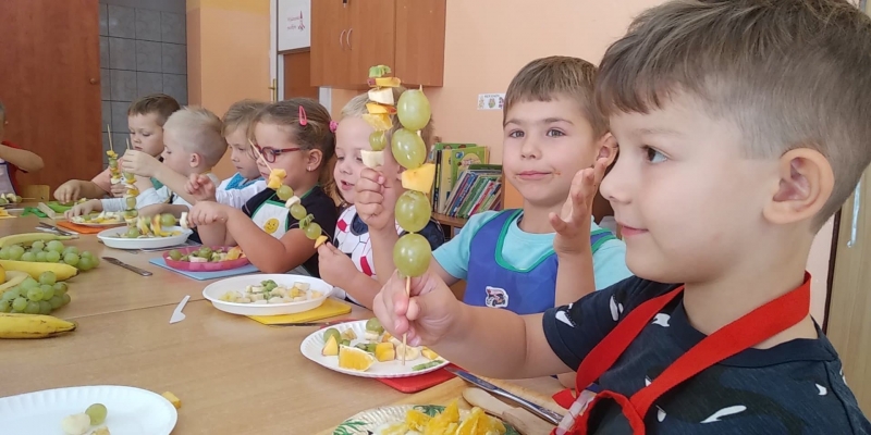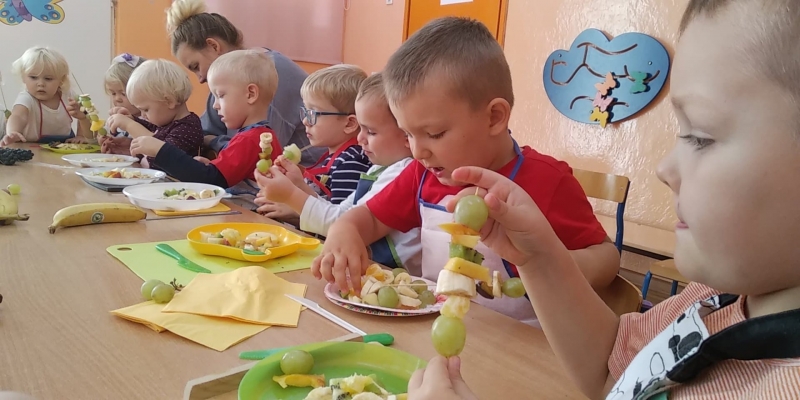 Jesień piękna i kolorowa daje nam dużo pysznych owoców i warzyw. Znamy już różne owoce i warzywa, a na zakończenie tygodnia Pszczółki samodzielnie przygotowały kolorowe szaszłyki. zobaczcie, ile było przy tym radości i uśmiechu…