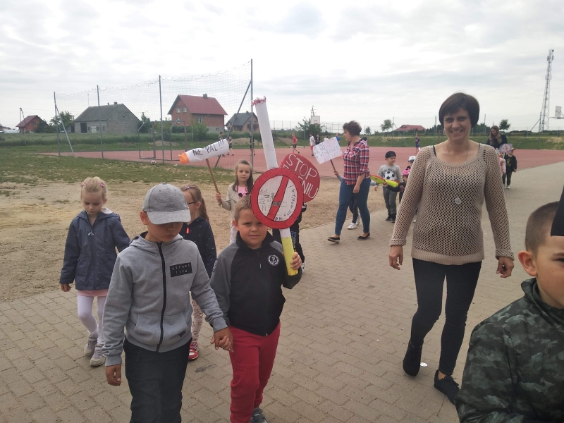 Dzieci bardzo chętnie uczestniczyły we wszystkich formach zajęć. Dodatkowo na tablicach ogłoszeń dla rodziców powieszono ulotki o tematyce uzależnienia od tytoniu. Podsumowaniem akcji w naszej placówce jest happening z okazji Dnia bez papierosa, gdzie wszystkie grupy maszerowały ulicami Skulska z transparentami o tematyce antynikotynowej przygotowanymi wspólnie z rodzicami.
