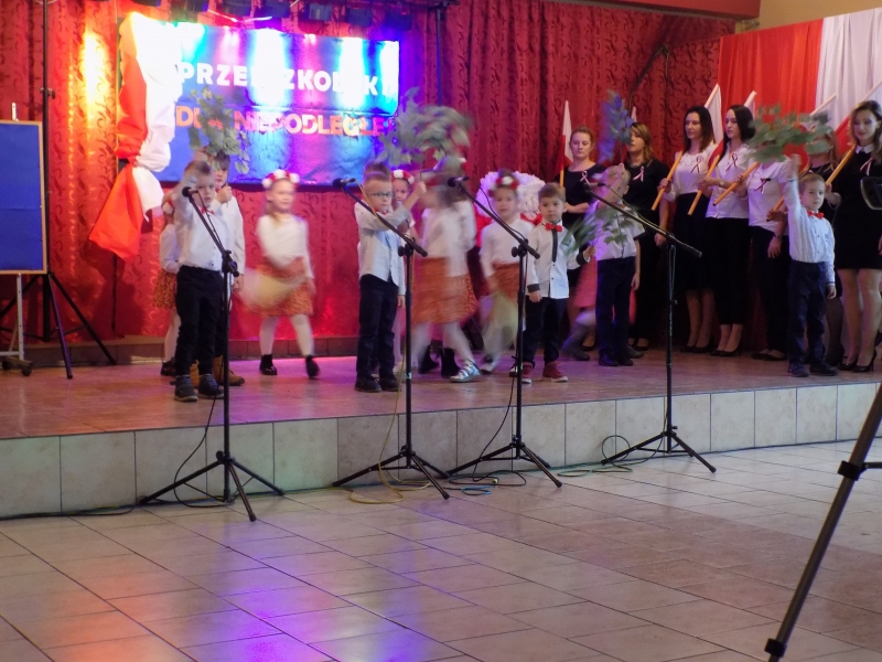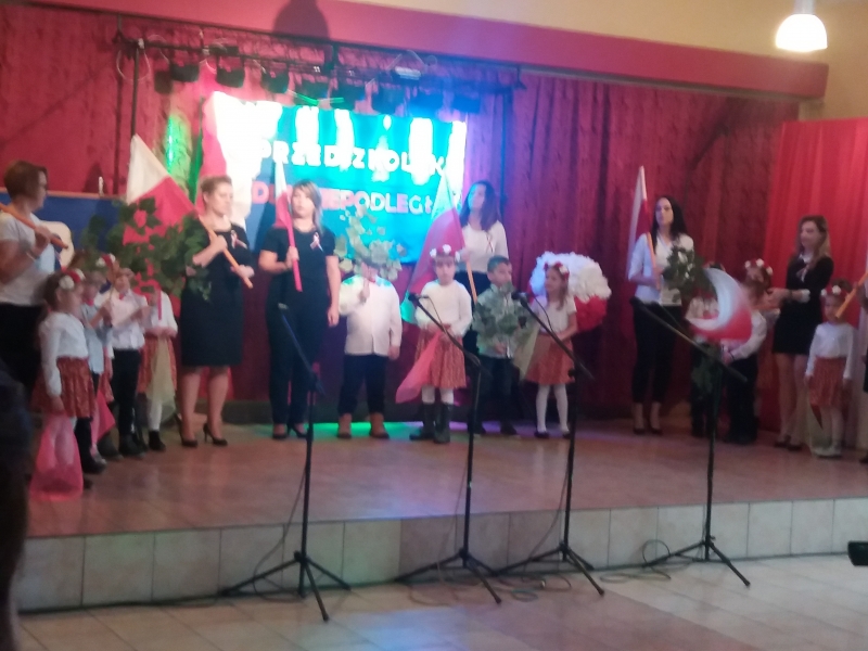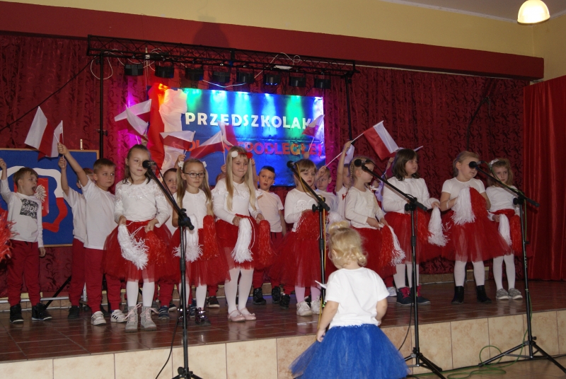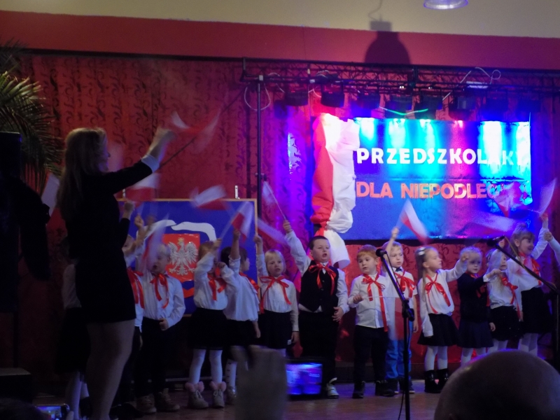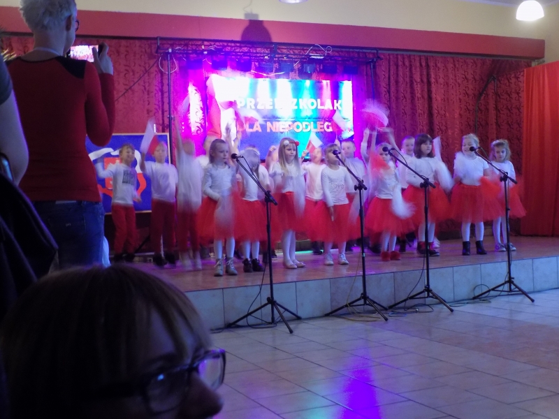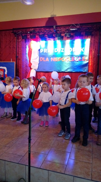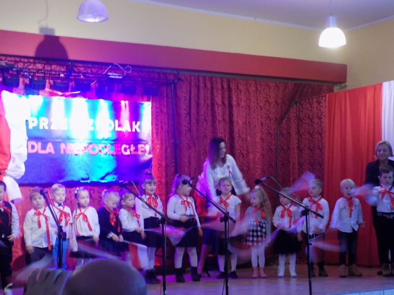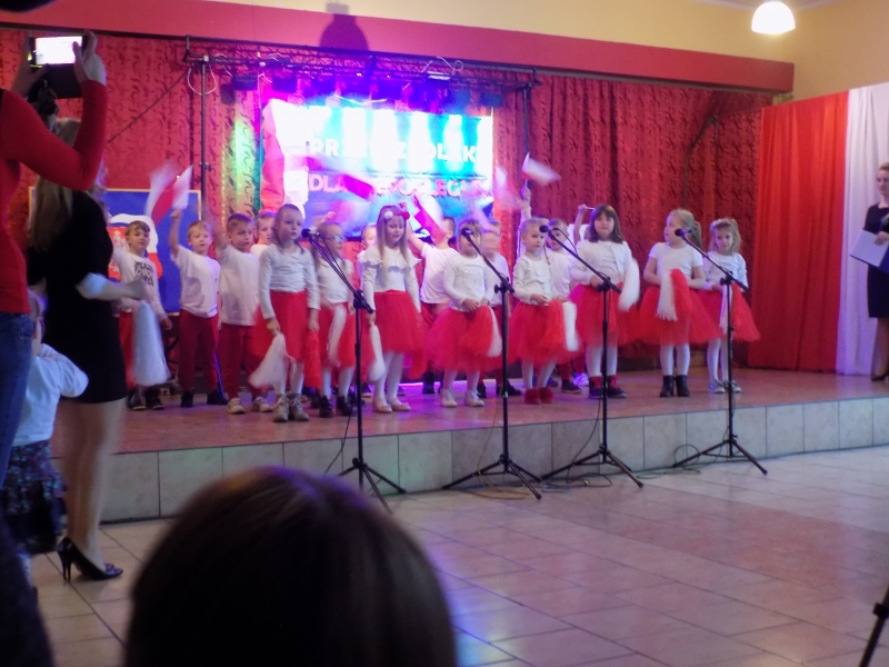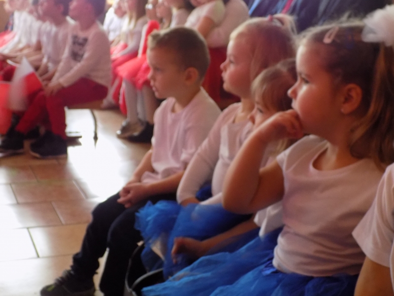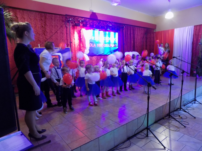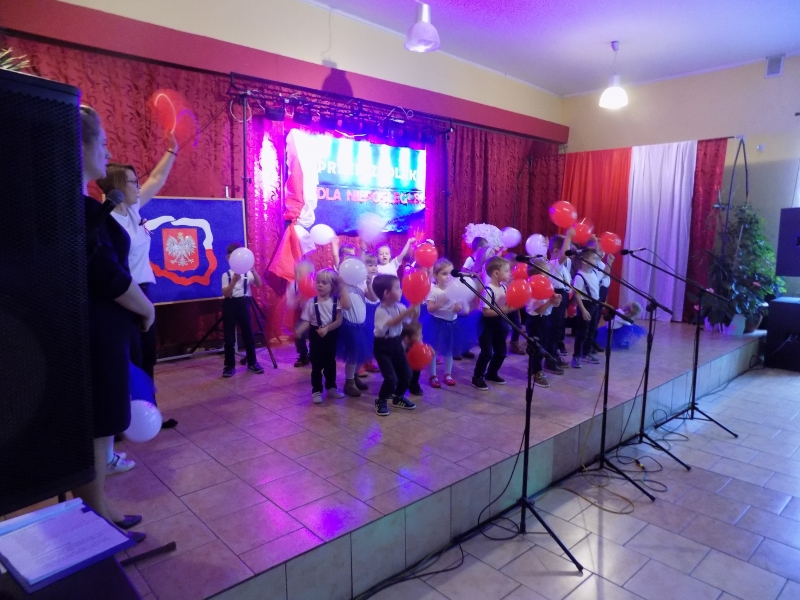 – 2,3 i 4- latki z grup Pszczółki oraz Mróweczki wraz z wychowawczyniami wykonały utwór „Polsko śpiewam dla ciebie tańczę i gram” (muzyka i