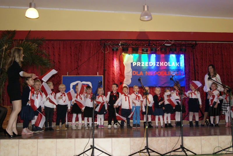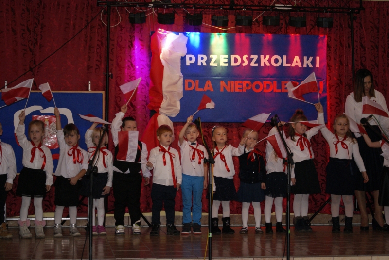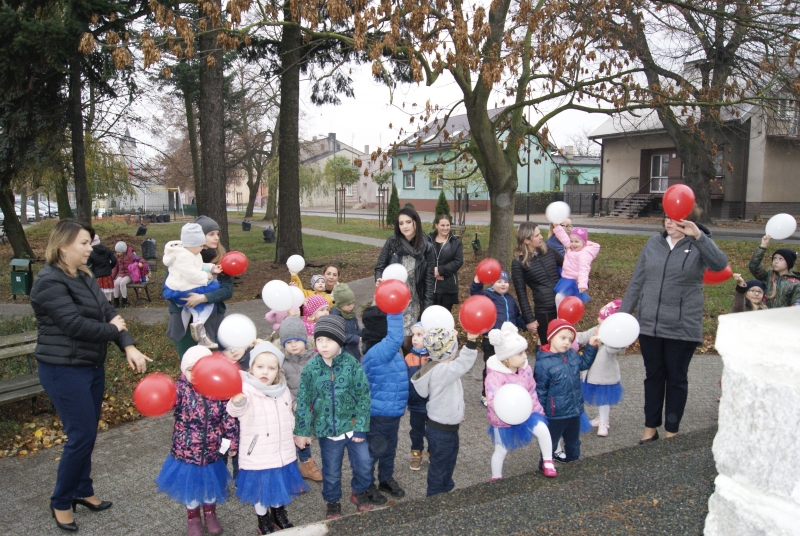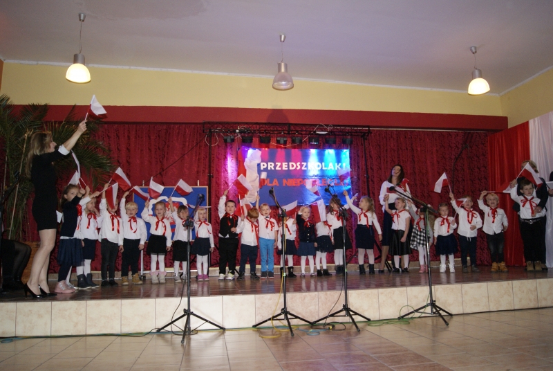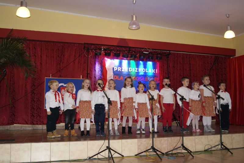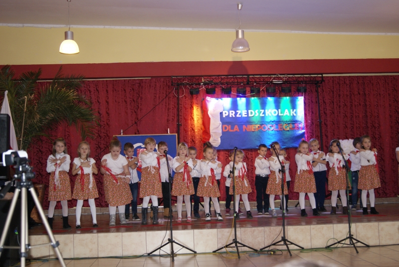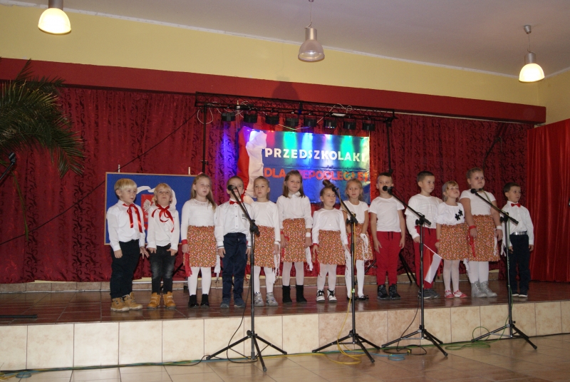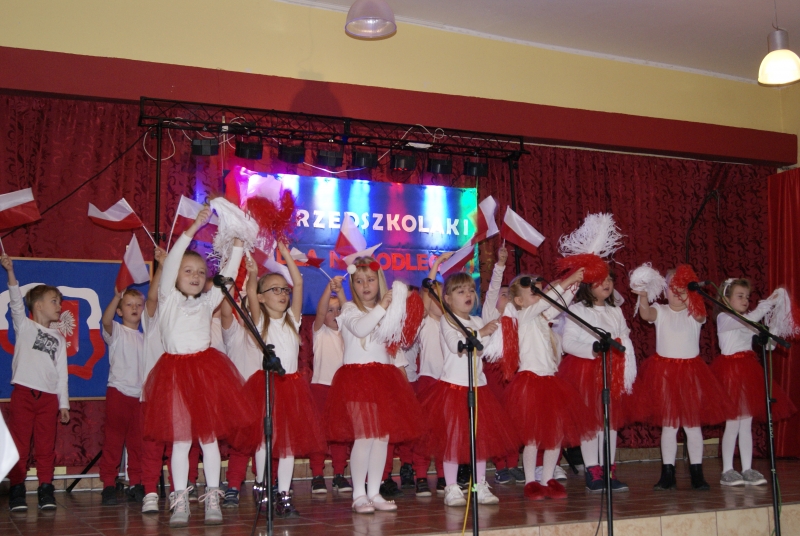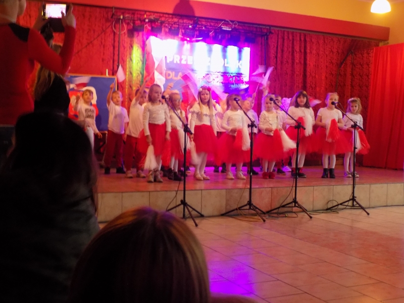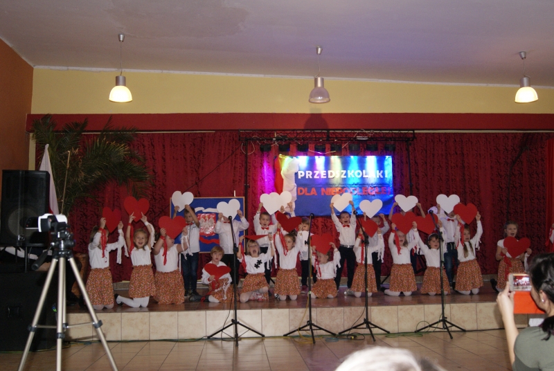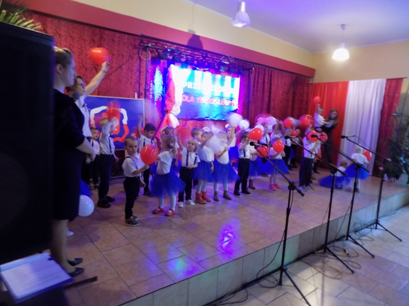 – 2,3 i 4- latki z grup Pszczółki oraz Mróweczki wraz z wychowawczyniami wykonały utwór „Polsko śpiewam dla ciebie tańczę i gram” (muzyka i