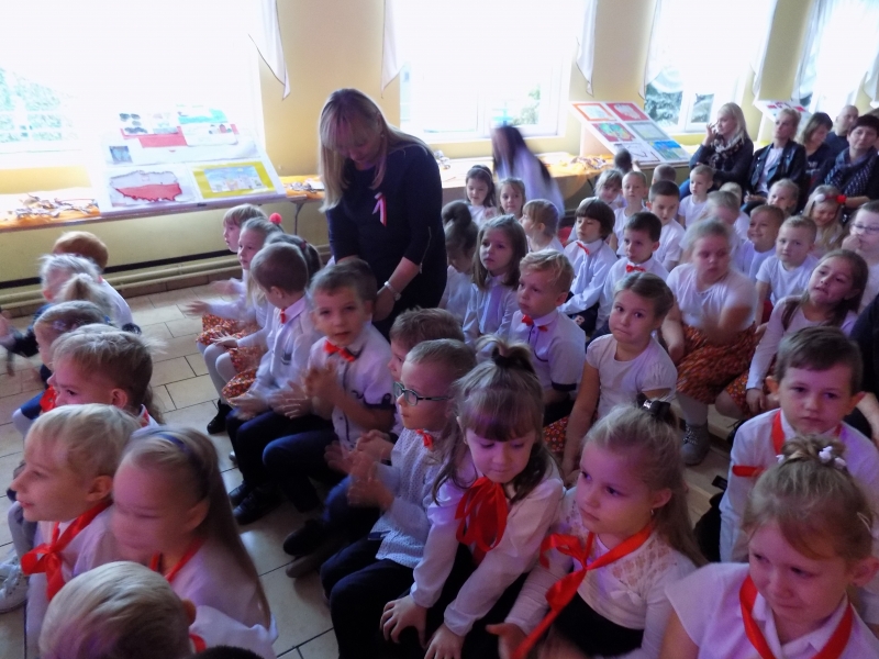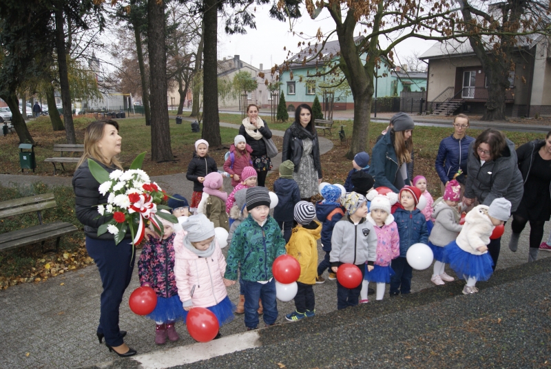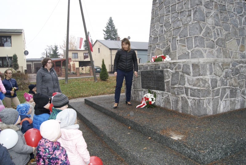 Dzieci podjęły również wyzwania dla Niepodległej Ojczyzny: przygotowały wiersz Czesława Janczarskiego „Co to jest Polska?” oraz bogatą wystawę prac plastycznych inspirowanych powyższym utworem. Złożyliśmy również kwiaty pod pomnikiem „Poległym w obronie ojczyzny”, który znajduje się w skulskim parku.