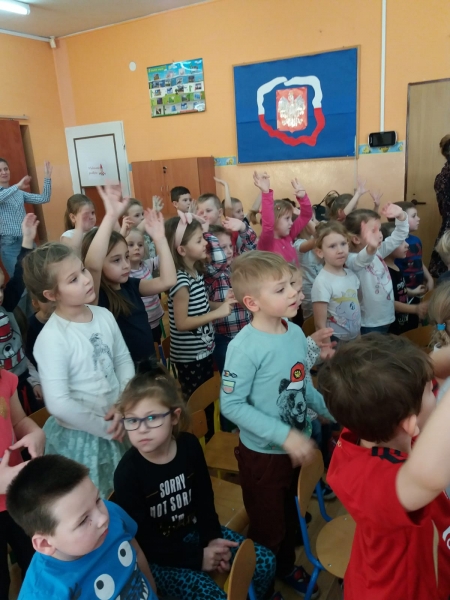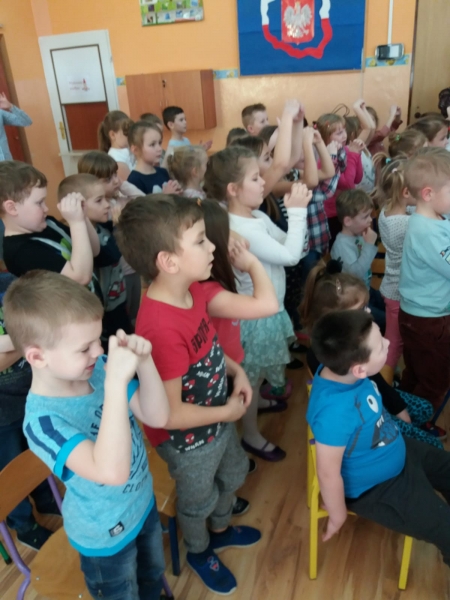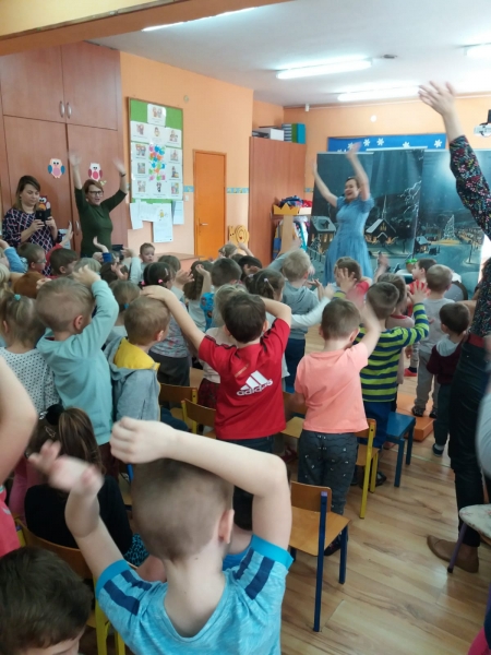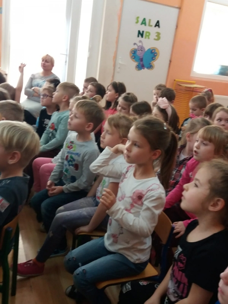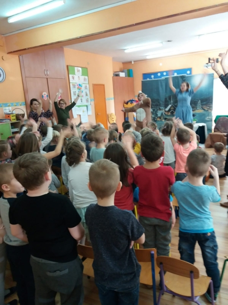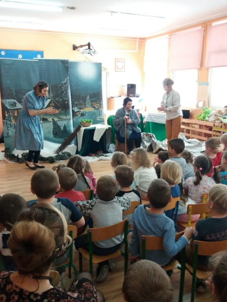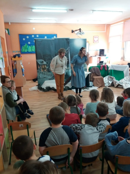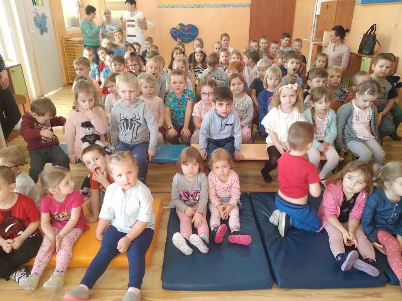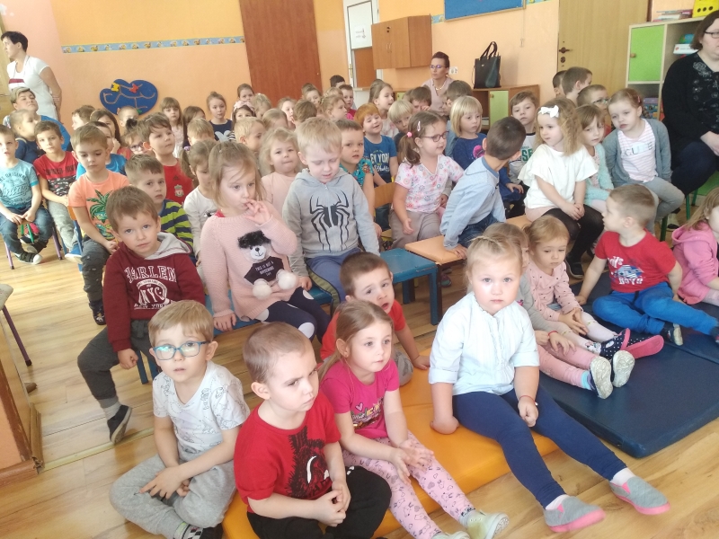 Wszystkie dzieci z uwagą oglądały spektakl teatralny.