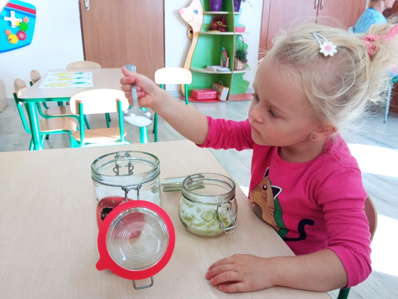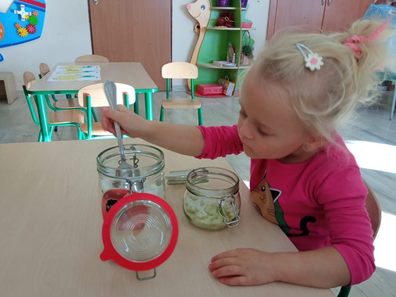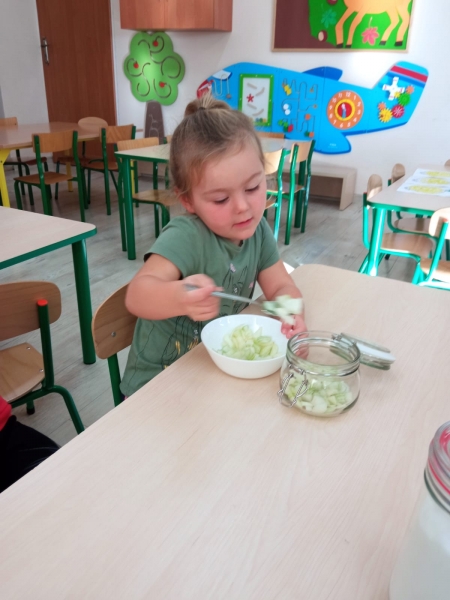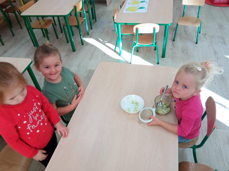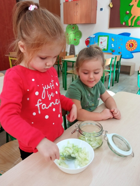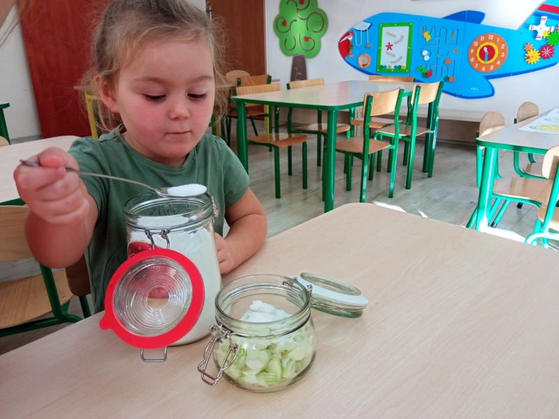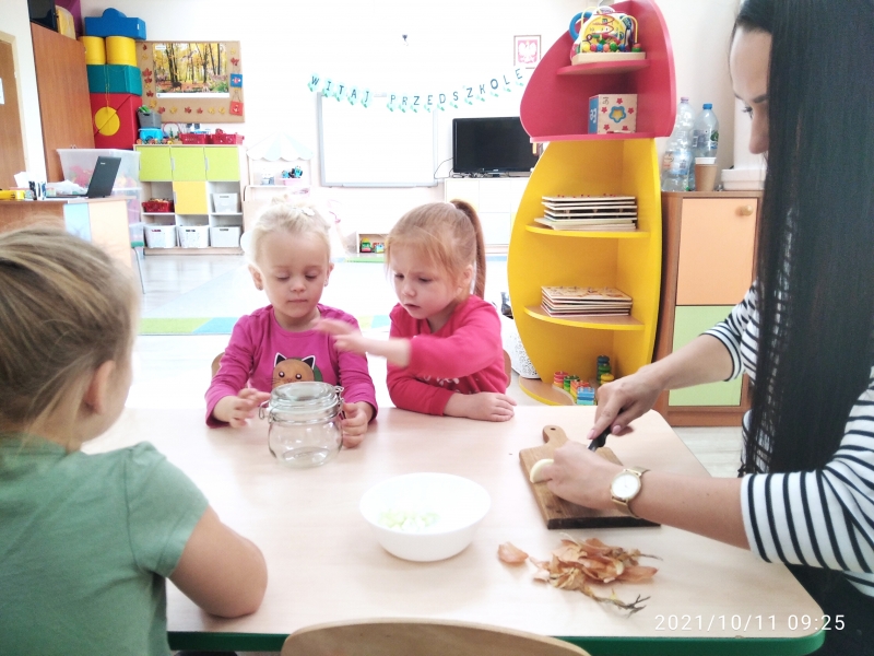 Syrop z cebuli jest od wieków sprawdzonym sposobem na przeziębienie. Przeznaczony jest zarówno dla dzieci, jak i dla dorosłych. Do wykonania podstawowej wersji syropu z cebuli potrzeba jedynie dwóch składników: cebuli i cukru. Dzieci z grupy Pszczółki postanowiły więc wykonać słodki syrop pod okiem wychowawcy.