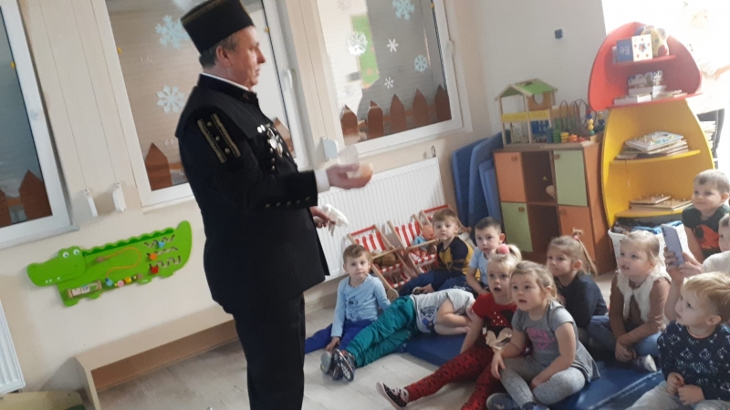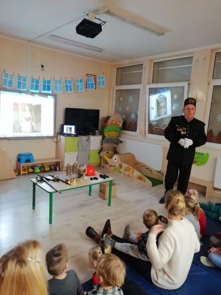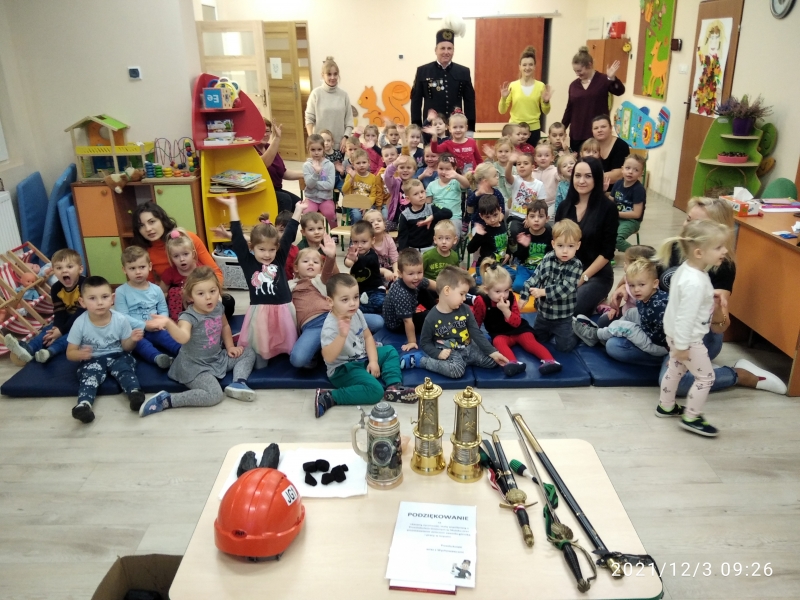 3 grudnia nasze przedszkole odwiedził górnik P. Krzysztof Kantanista, który zapoznał dzieci z ciekawostkami dotyczącymi swojej pracy. Przedszkolaki miały okazję zobaczyć górniczy strój galowy oraz liczne eksponaty przyniesione przez gościa. Największym zainteresowaniem cieszyły się węgiel i sól, które mogły dotknąć dzieci. P. Kantanista przedstawił także historię o Świętej Barbarze – patronce górników oraz prezentację multimedialną zawierającą zdjęcia z pracy górników w kopalni.