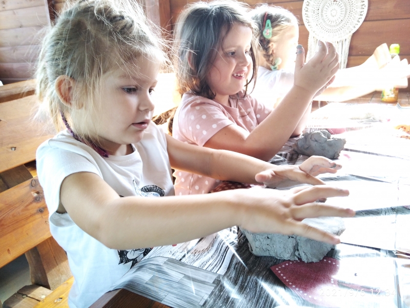 To był wyjątkowy czas spędzony na łonie natury. Dużą atrakcją było karmienie zwierząt, tor przeszkód oraz spacer po polu kukurydzy. Zabawy plastyczne z gliną były bardzo ciekawym doświadczeniem dla przedszkolaków.