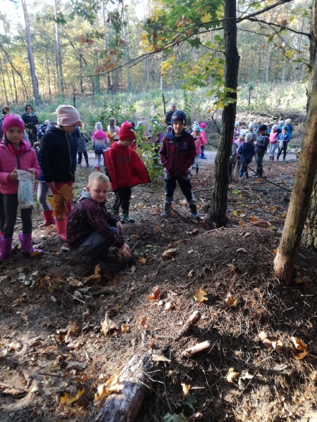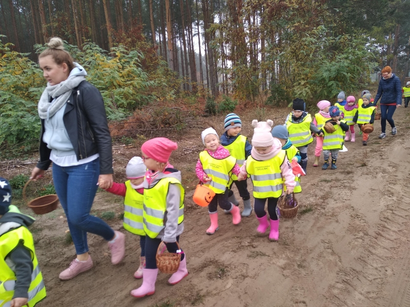 17 i 19 października udaliśmy się na wycieczkę do lasu. Obserwacja lasu jesienią, poszukiwania grzybków, żołędzi i kolorowych listków były cennym doświadczeniem dla naszych przedszkolaków.