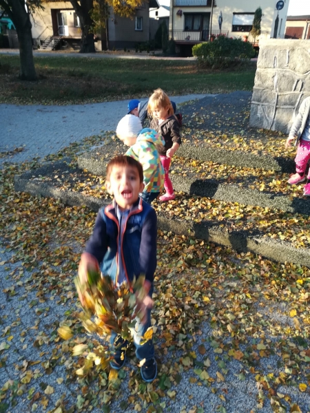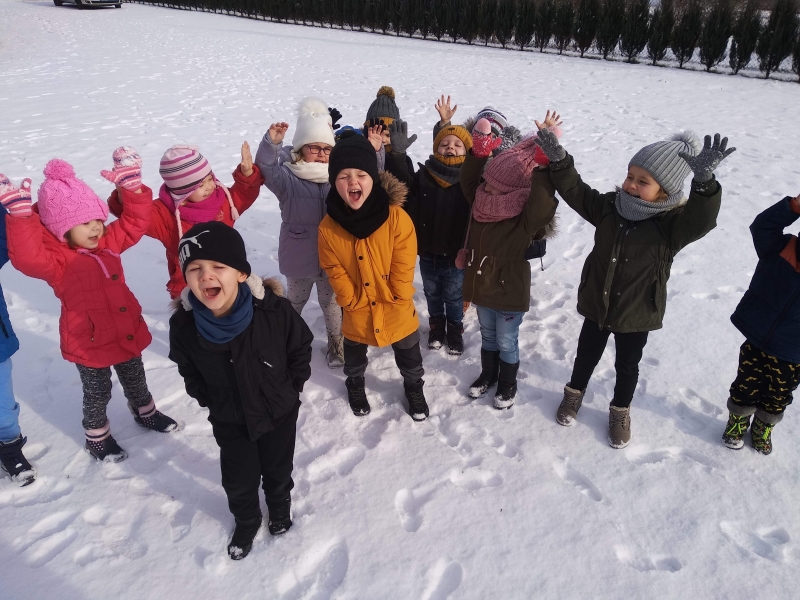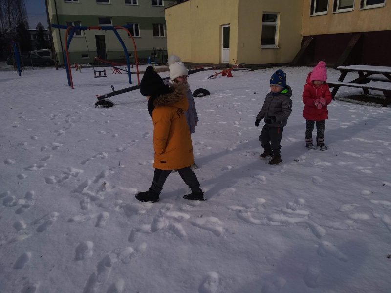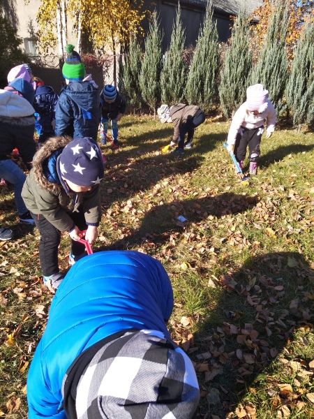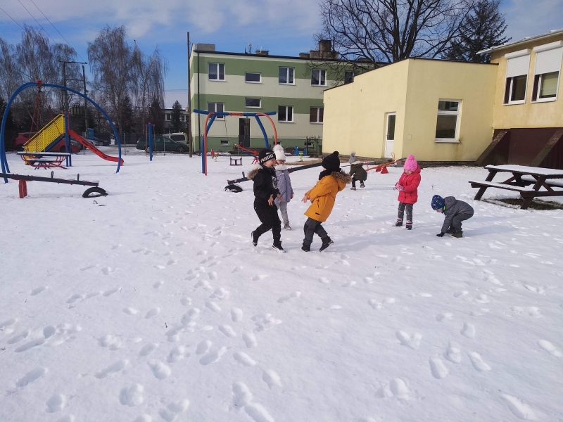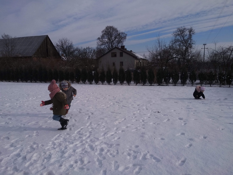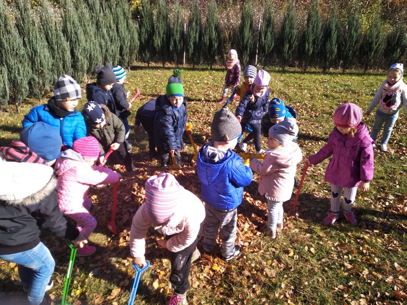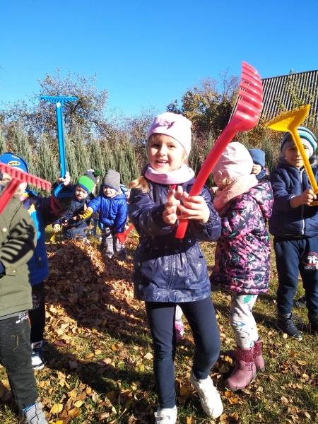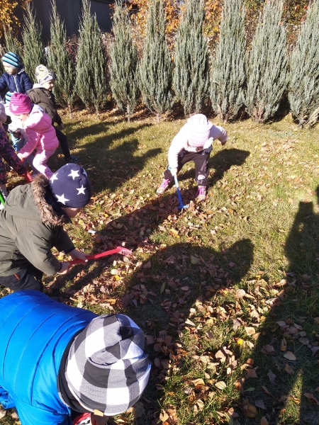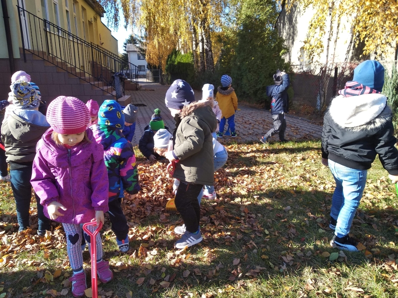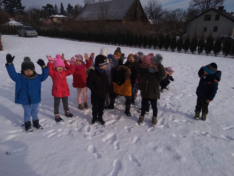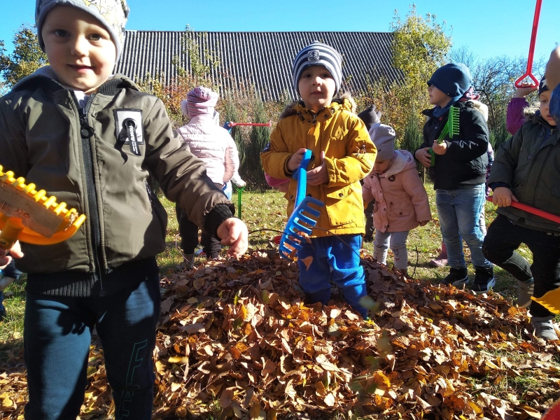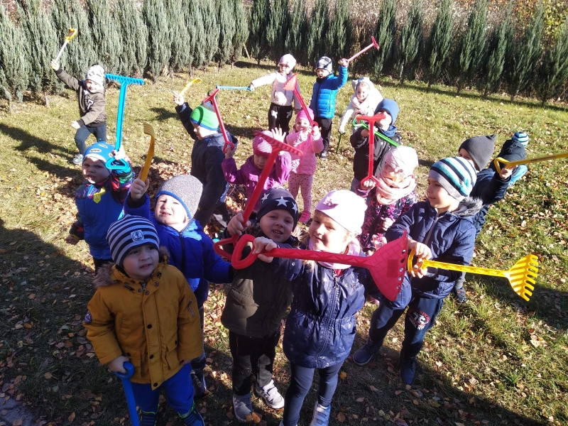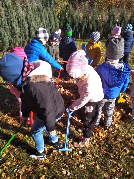 1. Bez względu na porę roku korzystamy ze spacerów i zabaw na świeżym powietrzu. Jesienią grabiliśmy szeleszczące liście, zimą biegaliśmy po śniegu. Każda pora roku zachęca nas do zabaw na zewnątrz. Nie możemy się doczekać wiosennych zabaw w przedszkolnym ogrodzie.