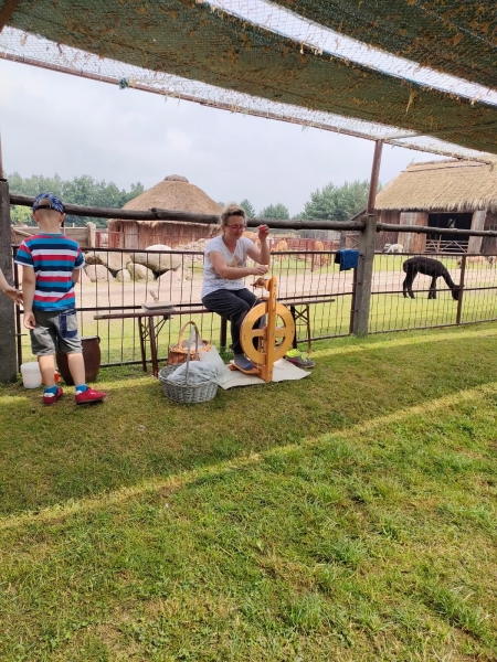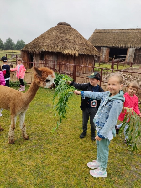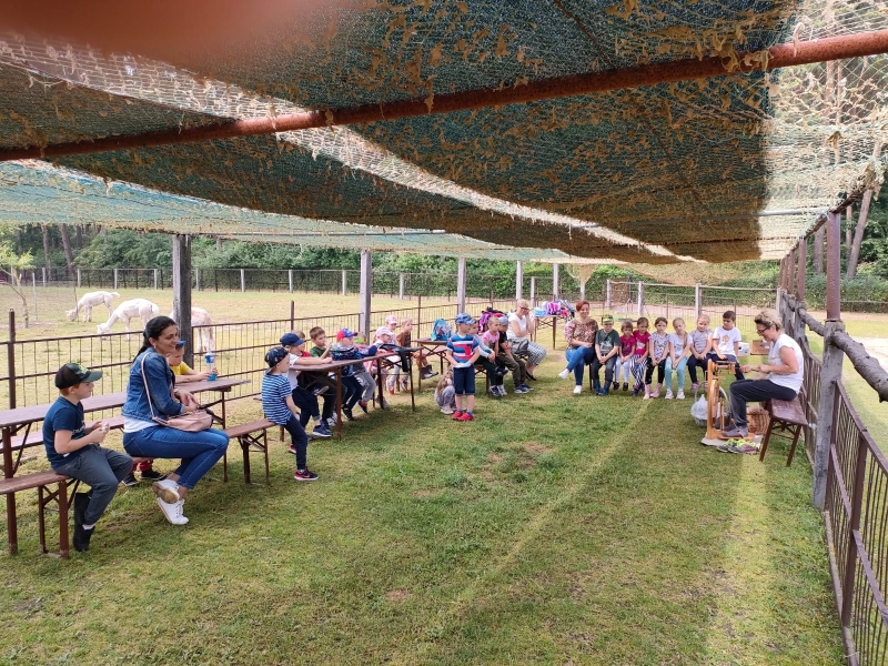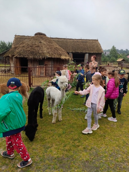 Alpaki odwdzięczyły się za troskę i marchewkę prawdziwą czułością! Na warsztatach dzieci zobaczyły w jaki sposób powstaje wełna. Wycieczka była udana a dzieci bardzo zadowolone.