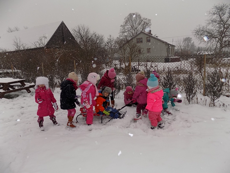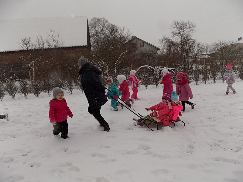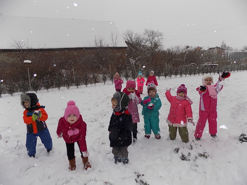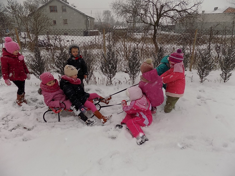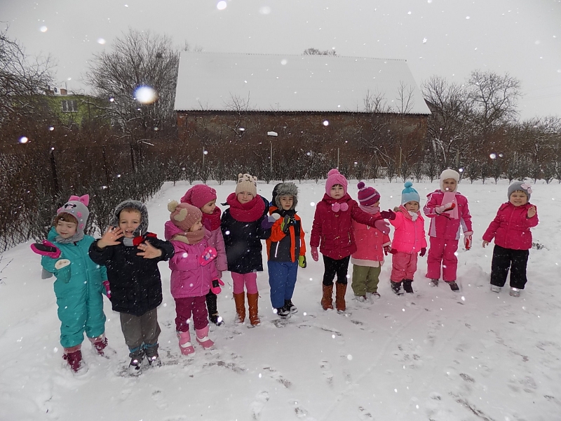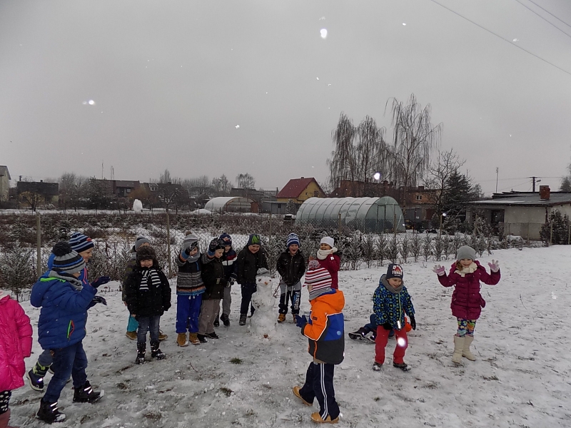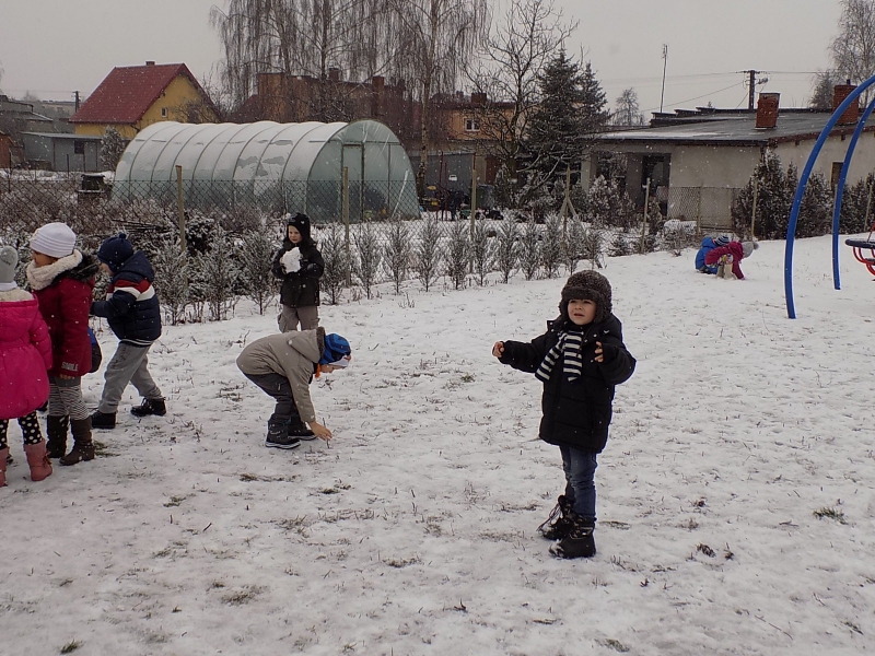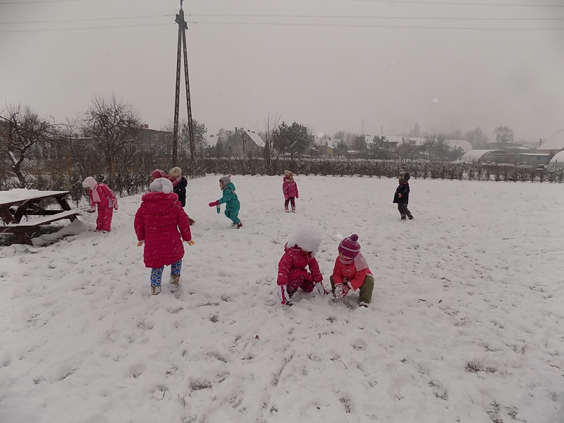 Zrobiło się biało…spadł upragniony śnieg. Przedszkolaki więc miały okazję pobawić się na świeżym powietrzu i nacieszyć się białym puszkiem który spadł z chmurek. Ile było radości zobaczcie sami….